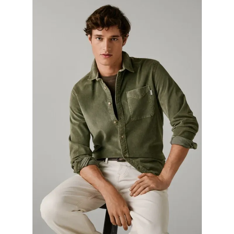 Αναβαθμίστε το στυλ σας με το διαχρονικό Ανδρικό Πουκάμισο Clayton από την Pepe Jeans. Κατασκευασμένο από πλούσιο, ελαστικό κοτλέ ύφασμα, συνδυάζει την κλασική αισθητική του πουκαμίσου με την άνεση του stretch υλικού, ενώ η γήινη απόχρωση του Χακί το καθιστά βασικό κομμάτι για κάθε εποχή.