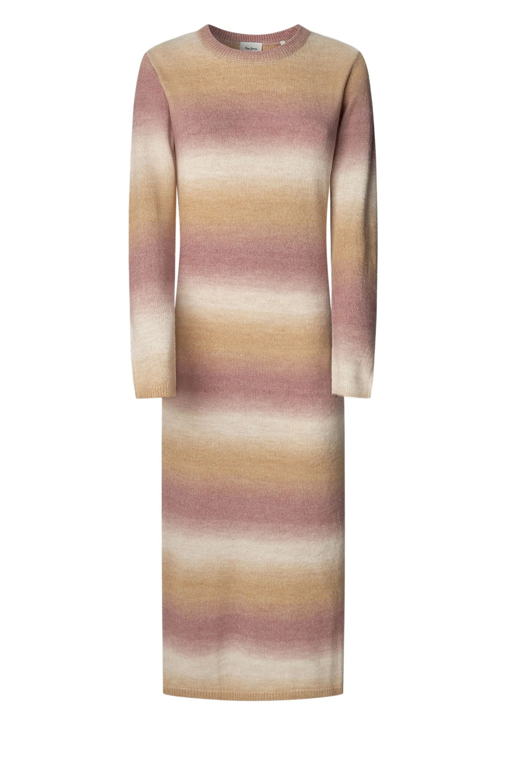 • Πλεκτό φόρεμα μακρύ, με ρίγες, μακριά μανίκια & στρογγυλή λαιμόκοψη. Rib στις μανσέτες, στο λαιμό και στο τελείωμα, άνοιγμα στο πλάι & μεταλλικό logo Pepe Jeans στο πίσω μέρος.