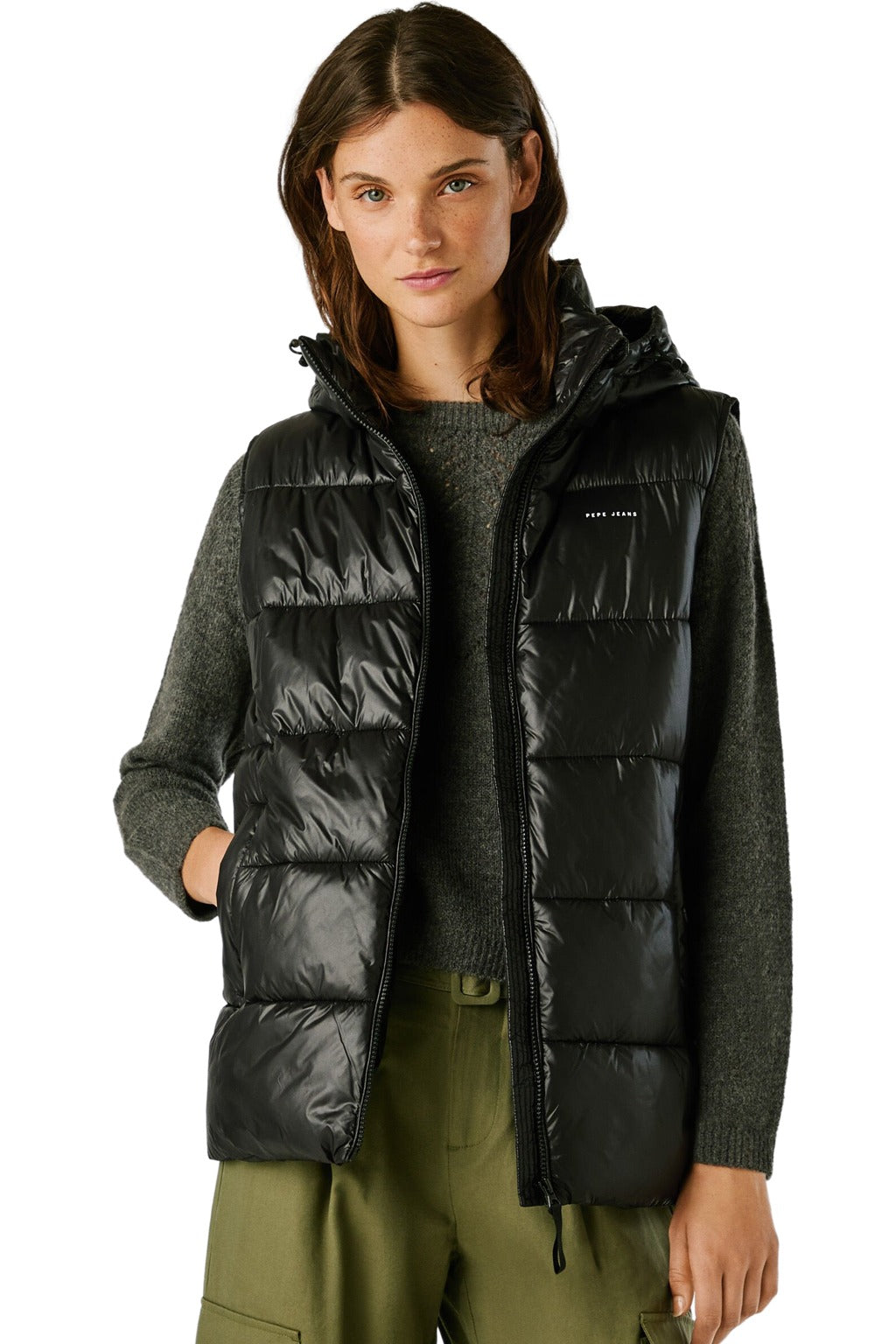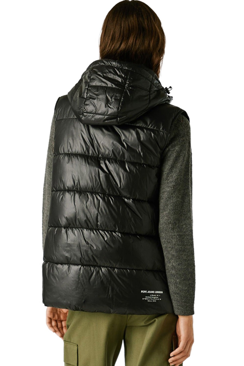 • Γιλέκο καπιτονέ, με εσωτερική επένδυση, ψηλό λαιμό, κουκούλα με κορδόνι προσαρμογής & κλείσιμο μπροστά με φερμουάρ. Δύο τσέπες στο πλάι & τυπωμένο logo Pepe Jeans στο στήθος και στο πίσω μέρος.